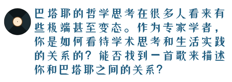 我刚刚也提到,我要求自己进行哲学研究的方式,不是单单去关注某人,而是要透过他的思考发现他的问题及审视其前提假设。这也是我研究巴塔耶的一个基本态度。