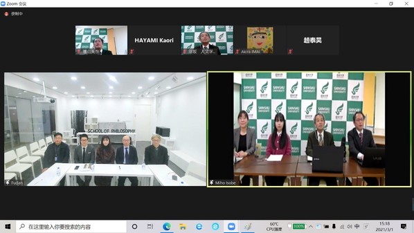 (图:线上签约仪式现场。左为复旦大学哲学学院,右为信州大学人文学部)