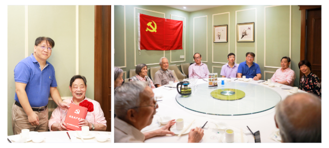 当天,退休党支部还举行了组织生活,欢迎新加入支部的同志。在建党百年的特殊年份,老同志们重温自己长期以来听党话、跟党走,为党的理论创新和教育事业奋斗的经历,感怀万千。今年七一前夕,退休党支部刘放桐教授被评为上海市教卫党委系统优秀共产党员和复旦大学优秀共产党员。党委书记袁新为刘放桐教授递上奖状并戴上红花。