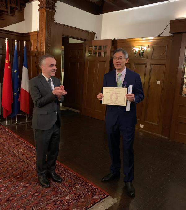 2021年10月18日晚,法兰西共和国“学术棕榈”(des Palmes académiques)骑士勋章的授予仪式在法国驻上海总领事官邸“巴塞别墅”举行。法国驻沪总领事纪博伟(Benoît Guidée)先生代表法国政府,为我院莫伟民教授颁发了法兰西共和国“学术棕榈”骑士勋章。复旦大学文科资深教授刘放桐先生、复旦大学法国研究中心主任褚孝泉教授、复旦大学哲学学院副院长林晖教授、复旦大学国际交流与合作处副处长许烨芳女士以及莫伟民老师的亲朋好友、部分在校学生出席了授勋仪式。