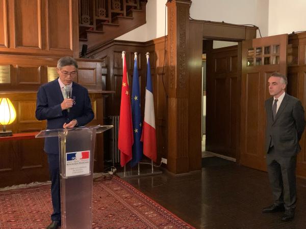 图为法国驻上海总领事纪博伟先生在授勋仪式上致辞