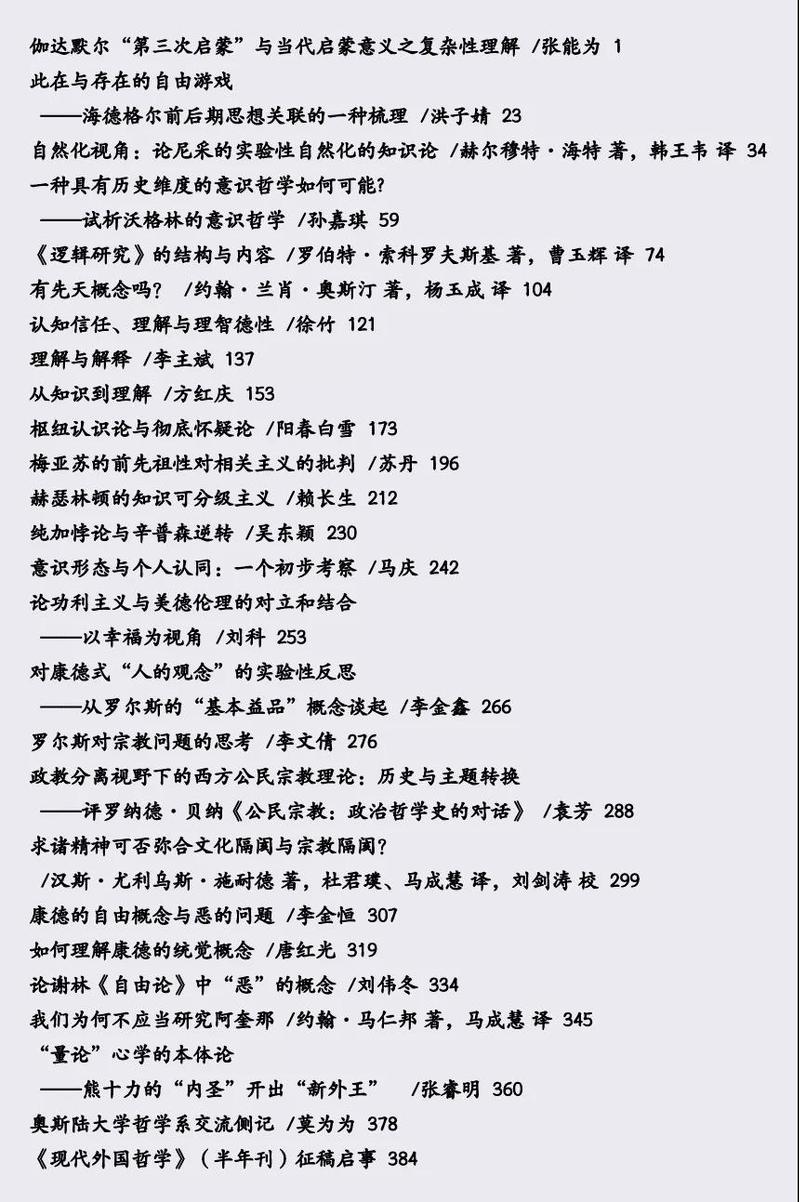 编辑出版一本学刊不容易。需要各位作者和各位编辑的辛勤付出。我们刊物的稿件大致有三个来源:一是会议论文的稿件,这包括中国现代外国哲学学会及其专业委员会会议的稿件;二是作者的投稿;三是我们的组稿。无论这些稿件的来源是哪里,我们都把它们分类后交给相关专家审稿,主编根据相关专家的审稿意见再与编辑组成员讨论是否录用或是否修改后录用。这样的审稿、修改稿件和编辑的过程也是一种作者、审稿者和编辑互相学习和互相交流的过程。我们希望这个平台有助于推动中国学界以更加积极的姿态展开对现代西方哲学的研究工作。