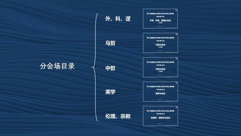 本届论坛共设有五个分会场,分别是:外哲科哲逻辑学分会场、马哲分会场、中哲分会场、美学分会场、伦理学宗教学分会场。