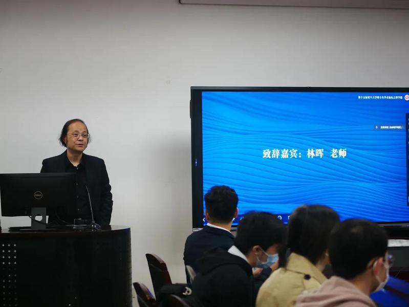 接下来,哲学学院副院长林晖老师代表复旦大学哲学学院欢迎各位的到来。他回顾了过往:复旦大学博士生论坛自2006年开始举办,坚持了15年,即使这两年受疫情影响,组织者与参与者的热情依然不减,灵活采取线上线下相结合的方式开展交流。他说到,哲学非概念王国,而是与时代息息相关的深入思考。林老师还对本次论坛的主题“传统与现实”进行了解读,关注传统不是怀着考古学的态度追忆过往,把握现代也不是当下得失的计算,传统与现代之间不仅是在过去与未来之间,也是在历史与文化场域中的沉思。他还简要介绍了本次论坛的分论坛和青年教师讲座,希望各位尽其所能,深入交流。最后,林老师宣布论坛正式开幕。