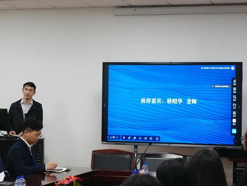 紧接着,哲学学院党委副书记耿昭华老师为会议致辞。耿老师同样对各位参与者,特别是外校外省市同学的到来表示欢迎。他指出,因疫情影响去年的论坛改为了线上形式,而今年通过组织者的不懈努力,将论坛搬到线下,为同学们提供更好的交流环境。他在这里特别感谢哲学学院研究生会同学们为了论坛的付出,哲院研会同样还筹备了其他的学术类活动,如思想孵化器和研究生沙龙等,这都为营造良好的学术共同体氛围做出了贡献。最后,耿老师欢迎各位同学参加复旦大学哲学学院艺术哲学系建系的相关活动,希望各位论坛参与者可以深入交流都有所收获,预祝论坛圆满成功。