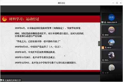 首先辅导员张港悦老师在伟大的抗美援朝老兵讲座的基础上做历史的教育宣讲。1935年的有志青年在国家到了最危险的时候,勇敢地承担起了国家民族的大任,值得当下每一个青年学生肃然起敬。在经过历史背景的教育回顾之后,每一位同学认识到了中国共产党领导下的抗日战争和救亡运动的伟大历史意义,认识到今天的幸福生活都是因为老一辈革命战士的浴血奋战,团员们都更加坚定了对中国共产党领导的坚定支持和拥护,更加牢记着自己在现在承担的历史使命。