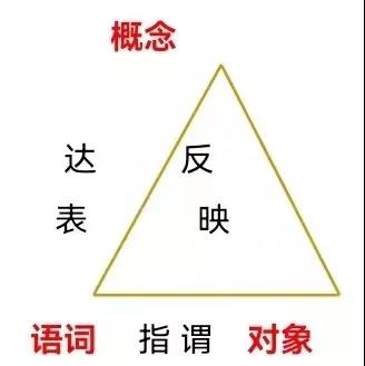 重头戏是如何分析概念。首先是从语言出发,区分语言和语言所表达的东西。根据古典逻辑,语词和概念之间既有联系,又有区别。语词属于语言学,概念属于逻辑学。概念的表达离不开语词,但并非所有语词都表达概念。语词、概念和对象之间是一种语义三角关系:语词表达概念,概念反映对象,语词指称对象。