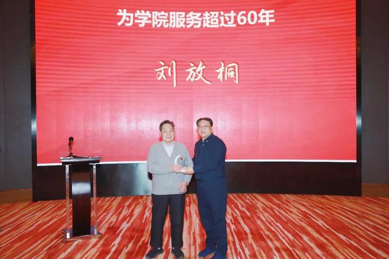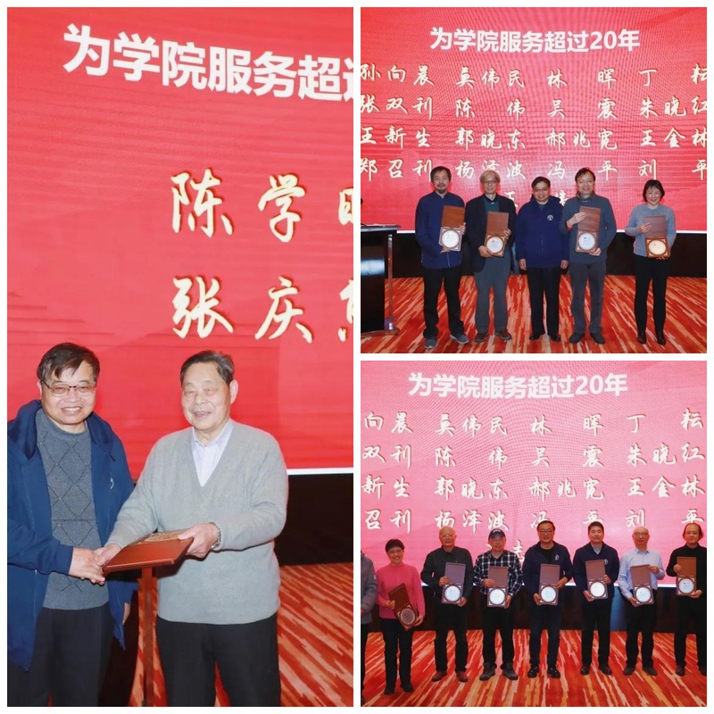 刘放桐教授为在学院服务超过40年的教师代表颁发感谢牌,陈学明教授、原哲学系主任孙承叔教授为在学院服务超过20年的教师代表颁发感谢牌。