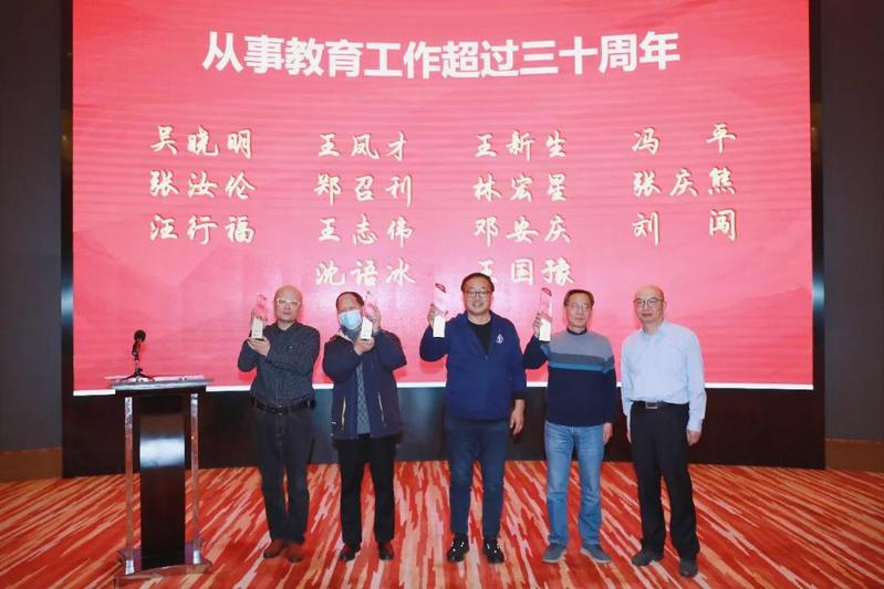 三尺讲台系国运,一生秉烛铸师魂。2021年哲学学院有4位老师从事教育工作满30年,全院在职教师中从教超过30年的共有14位。院长孙向晨向教师代表颁发了从事教育工作三十周年定制纪念杯。