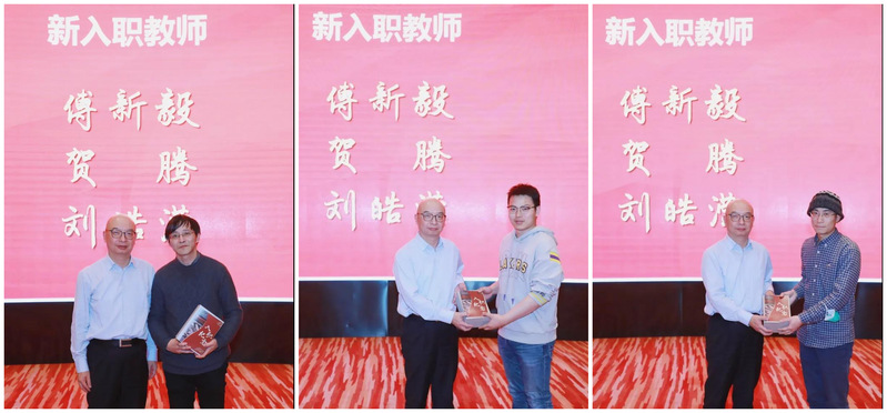 孙向晨院长为最新入职的傅新毅、贺腾、刘皓滢三位老师颁发了入职纪念卡片,希望新老师传承发扬学院传统,共创卓越未来。