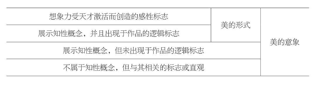总之,作品在个别局部上的感性标志,哪怕单独来看是美的,是表述感性理念的,也未必能参与构成美的形式与美的意象。反过来说,后者却可以包含一些逻辑标志之外的、就其本身并不美的感性标志。局部上的感性标志可能是美的,也可能不是。天才只生产(有别于逻辑标志的)感性标志,却不能保证这些标志与逻辑标志乃至与概念相关的直观的主观协调。