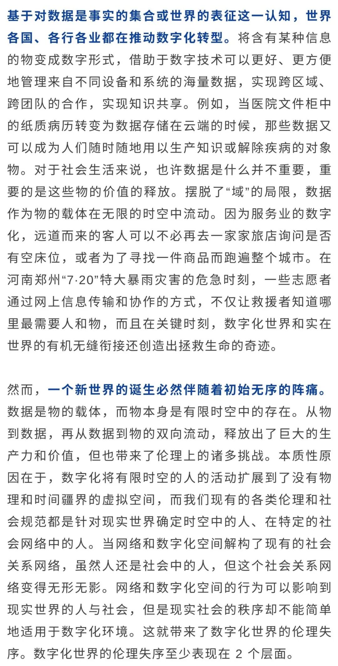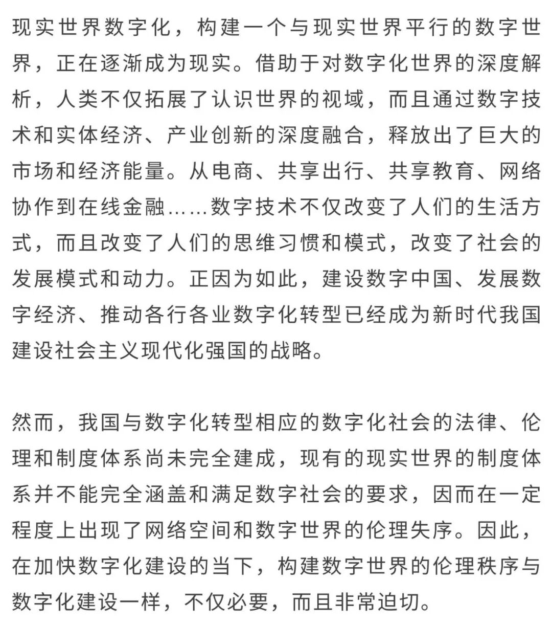 编者按:数字技术一直在改变我们的生活方式,同时也改变着我们的思维模式甚至社会的发展模式。本期周一谈治学,我们转载了发表在《中国科学院院刊》的文章,一起来看看数字化世界如何构建相应的伦理秩序。