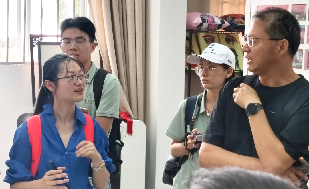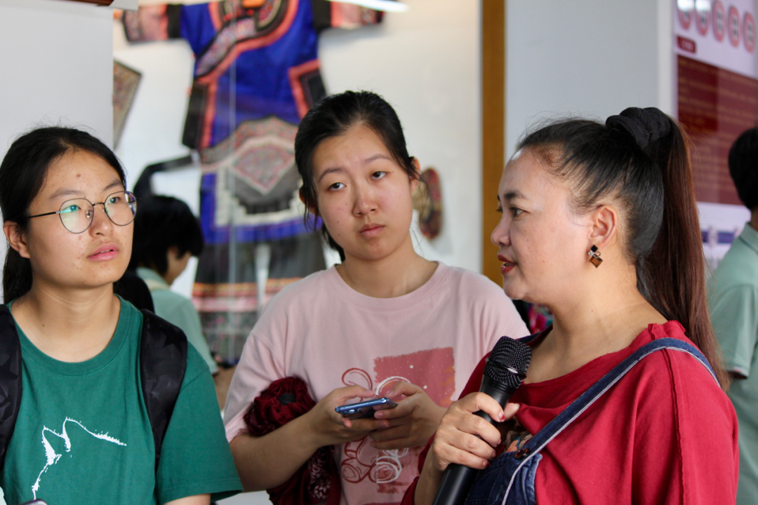 在参观过程中,师院美艺学院书记王建华向调研团介绍了彝绣学院的教学模式。学院的培养方案以专业艺术课程为主,教授学生彝绣的传统技法,如色彩搭配、图案寓意、针法运用等,鼓励学生结合现代审美趋势,进行跨界融合与创意设计。针对同学关心的学生彝绣作品市场化问题,王书记表示,目前学院的课程重心在于教学和设计,但将优秀的设计作品转化为市场认可的商品也是彝绣产业发展的重要一环,未来学院将探索引入市场营销类课程,同时优化校企对接,推动产学研深度融合,实现彝绣产业的可持续发展。