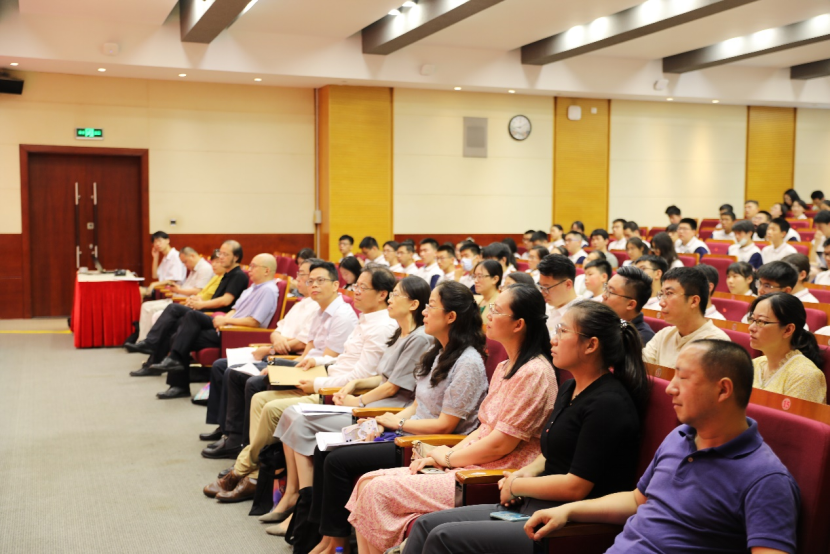 开幕式后,复旦大学哲学学院张汝伦教授为全体同学做了题为《哲学的批判视野》主题讲座。张汝伦指出,哲学不容易定义,但哲学是人之为人的根本,是每个人基本的存在方式,这是哲学学科与其他学科的根本不同。哲学真正的生命在于批判和反思,而这也是东西方哲学的共有特征。但哲学意义上的批判不同于否定,而是更接近“明辨”概念,因为只有反思和批判才能让“熟知”变为“真知”。最后,张汝伦引用古今中外哲学家的名言,结合自己的教学、生活经验,勉励同学们一定要在学习生活中始终保持反思批判的态度和哲学思维方式,不轻信所谓的“常识”,多看书多学习,不拘泥于记住基本的知识,坚持批判性和创造性,保有理想信念,珍惜大好年华。