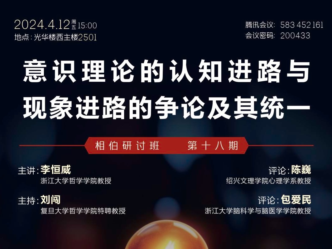 【相伯研讨班】第十八期 | 李恒威:意识理论的认知进路与现象进...