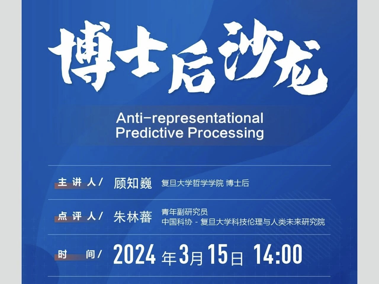 【讲座】博士后沙龙 | 顾知巍:Anti-representational Predictiv...