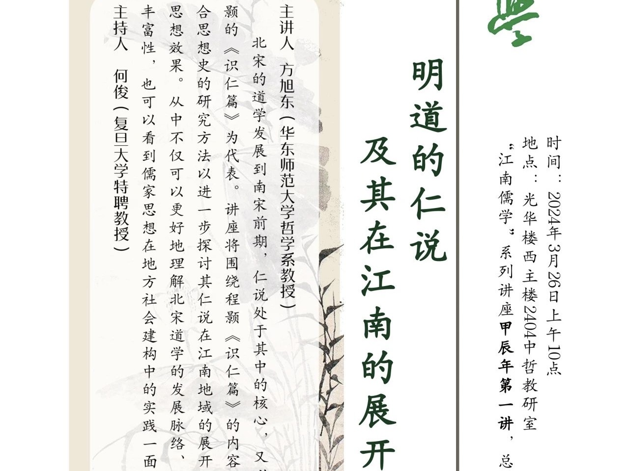 【讲座】“江南儒学”系列讲座 | 方旭东:明道的仁说及其在江南...