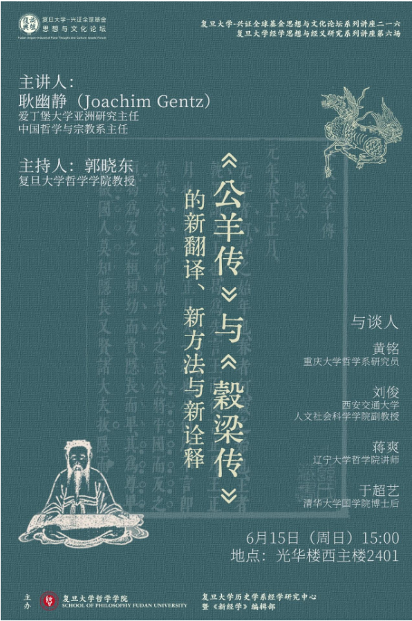 【讲座】复旦大学经学思想与经义研究第六场|耿幽静:《公羊传》...