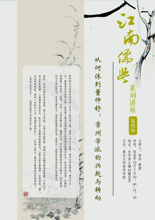 “江南儒学”系列讲座第四场:从何休到董仲舒:常州学派的兴起与...