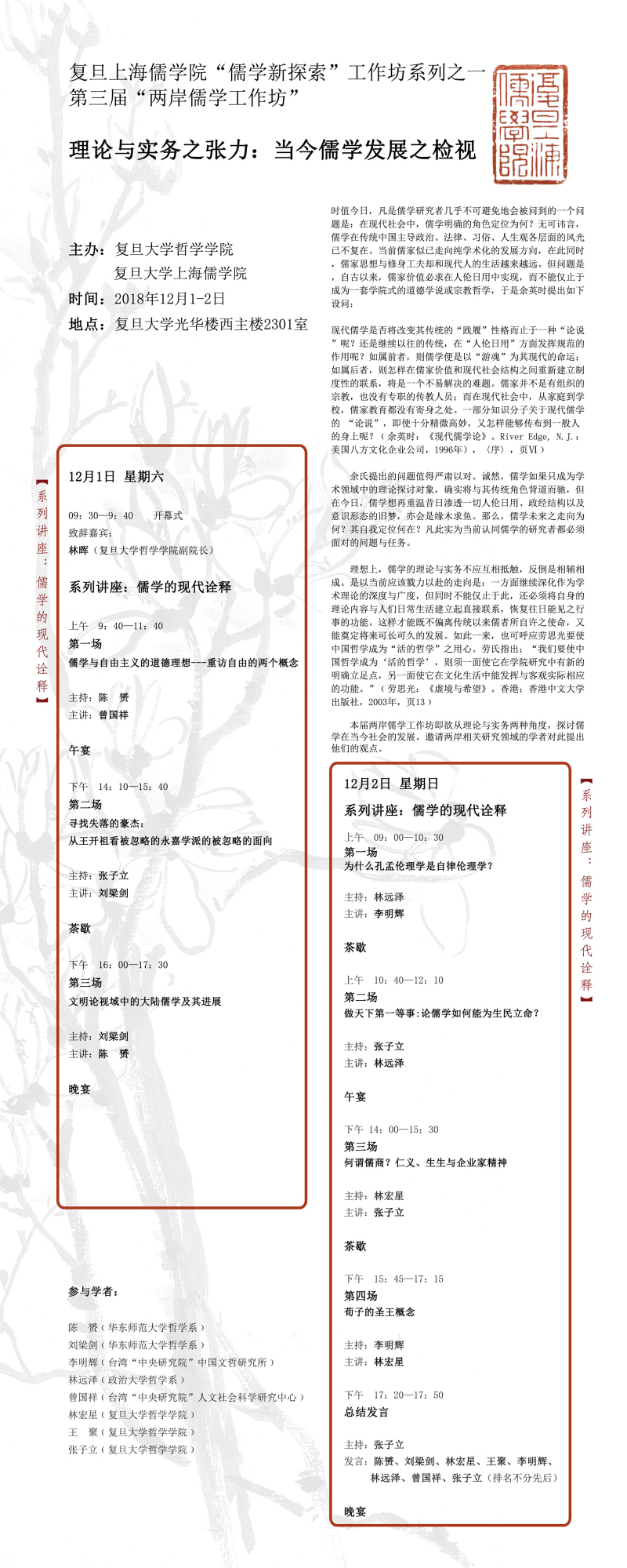 第三届“两岸儒学工作坊”——理论与实务之张力:当今儒学发展之检...