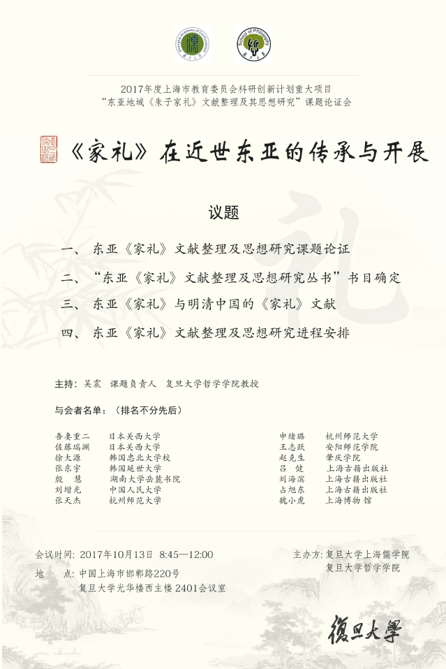 【重大项目课题论证会】《家礼》在近世东亚的传承与开展