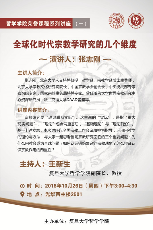 哲学学院荣誉课程系列讲座(一):全球化时代宗教学研究的几个维...