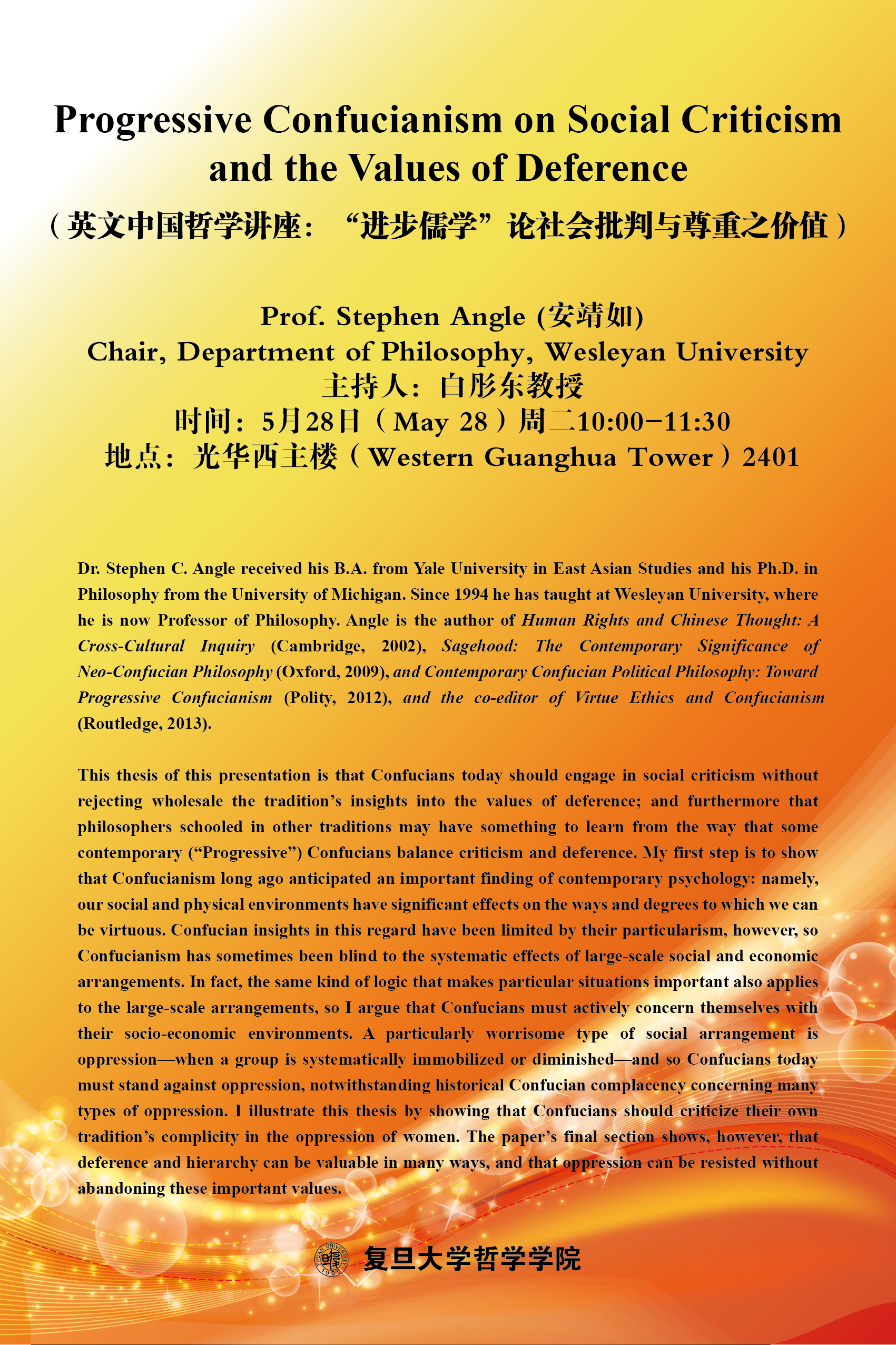 英文中国哲学讲座:“进步儒学”论社会批判与尊重之价值
