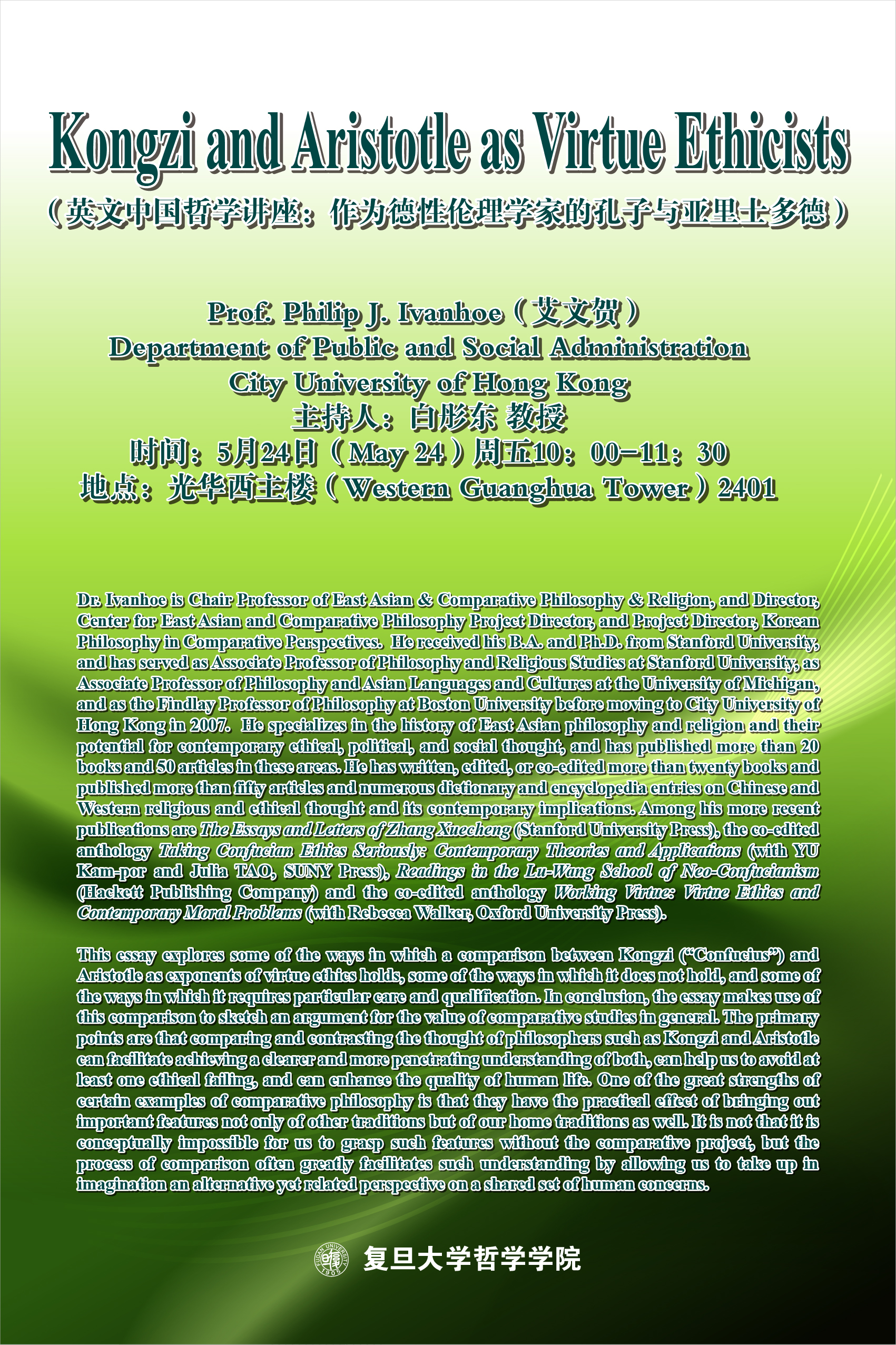 英文中国哲学讲座:作为德性伦理学家的孔子与亚里士多德