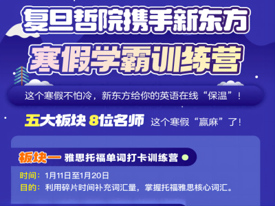 生涯指导丨复旦哲院携手新东方,邀你参加寒假学霸夏令营!