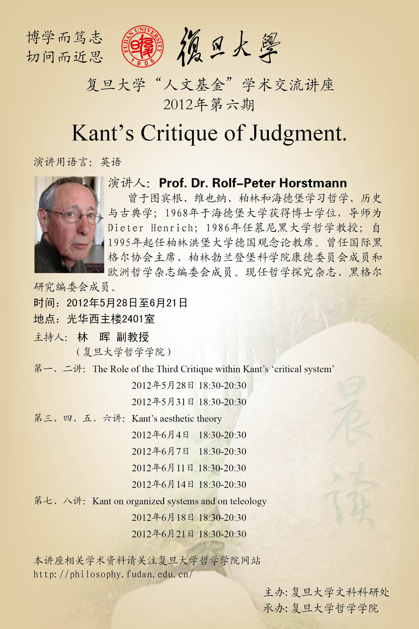 复旦大学“人文基金”学术交流讲座:Kant's Critique of Judgmen...
